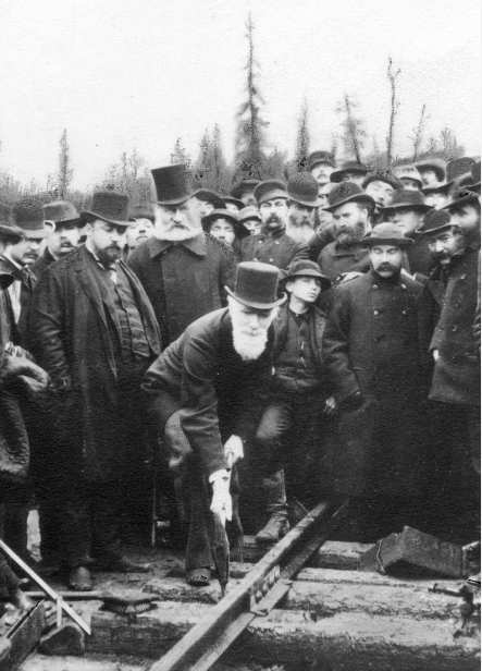 In 1872 Smith was appointed to the first group of members of the Temporary North-West Council, the first governing assembly of the North-West Territories. In 1875 he was among the incorporators of the Manitoba Western Railway. He was also a partner in the Red River Transportation Company With his first cousin, George Stephen (later Lord Mount Stephen), he co-founded the Canadian Pacific Railway. He's the guy that drove in the last spike for the trans-Canada railway in 1885. In 1887 he became President of the Bank of Montreal He was involved in (or founded) over 80 trust structures, including the Royal Trust and Montreal Trust. Smith was also re-elected to the Canadian House of Commons in 1887 He was Canadian High Commissioner to the United Kingdom from 1896 to 1914. He was chairman of Burmah Oil and the Anglo-Persian Oil Company. He purchased the land and then gave $1 million to the City of Montreal to construct and maintain the Royal Victoria Hospital. Lord Strathcona also made a major donation to McGill University in Montreal, where he helped establish a school for women in 1884 (Royal Victoria College). He was named Chancellor of McGill in 1888, and he held the post until his death. In 1910, Lord Strathcona deposited in trust the sum of $500,000, bearing an annual interest of 4%, to develop citizenship and patriotism, for example the Royal Canadian Army Cadets movement. He is remembered today by the Cadets with the Lord Strathcona Medal. When he retired back to Scotland and learned about a curling competition between Canada and Scotland in the early 1900s he commissioned a trophy in his name - the Strathcona Cup. It is a very large, solid silver cup with images of Canada engraved on it (see photo below of the victorious 2018 Canadian team with the Cup) It is kept under lock and key in a jewelers in Edinburgh and due to its value is only brought out when the competition is held in Scotland. He was inducted into the Canadian Curling Hall of Fame in 1973. Recognition for Lord Strathcona Strathcona Avenue, located in Westmount (a suburb on the island of Montreal) is named in his honour. Strathcona is commemorated in Manitoba by the Rural Municipality of Strathcona and by three streets in Winnipeg: Donald Street and Smith Street in the downtown core, and Strathcona Street in the city's West End. The Town of Transcona, Manitoba, incorporated in 1912 as a community to support the new railway shops of the Grand Trunk Pacific and National Transcontinental railways, takes half its name from Lord Strathcona, and the other half from the word transcontinental In Alberta, he is commemorated by the Calgary neighbourhood of Strathcona Park, by the Edmonton neighbourhood of Strathcona, and by the municipality of Strathcona County. In British Columbia, the Vancouver neighbourhood of Strathcona takes its name from Lord Strathcona School built in 1891, and Mount Sir Donald in Glacier National Park is named after him. The Town of Fort Smith in the Northwest Territories is named after Donald Smith. There is a stained glass window memorializing him in Westminster Abbey. Strathcona Park, which was erected by the city of Ottawa in 1907, is dedicated to him.